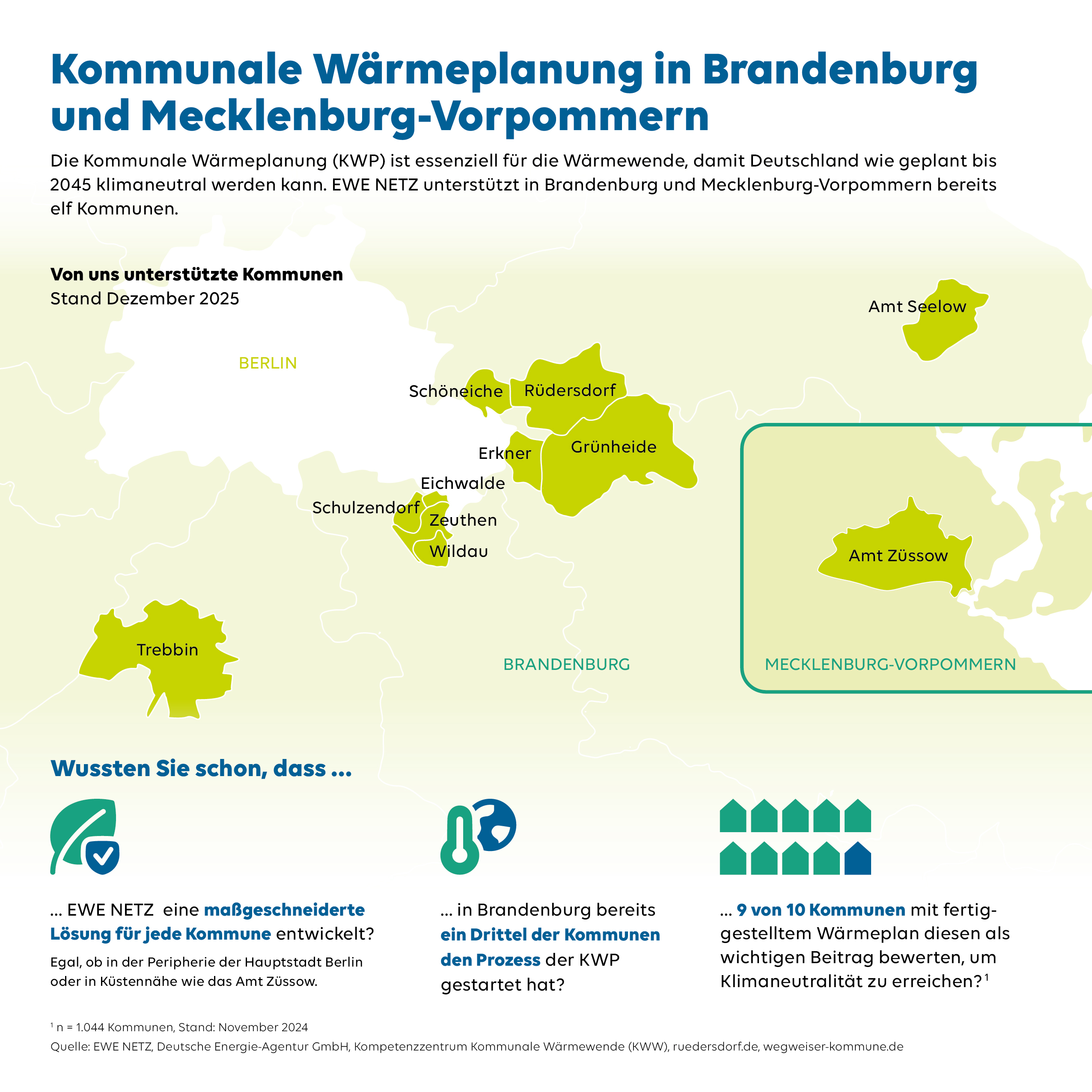 Diese gesetzlichen Vorgaben betreffen perspektivisch alle Kommunen in den Netzgebieten von EWE NETZ. Sie bilden die Grundlage für eine zukunftsfähige, klimaneutrale Wärmeversorgung und eröffnen zugleich Chancen für eine strategische kommunale Entwicklung.