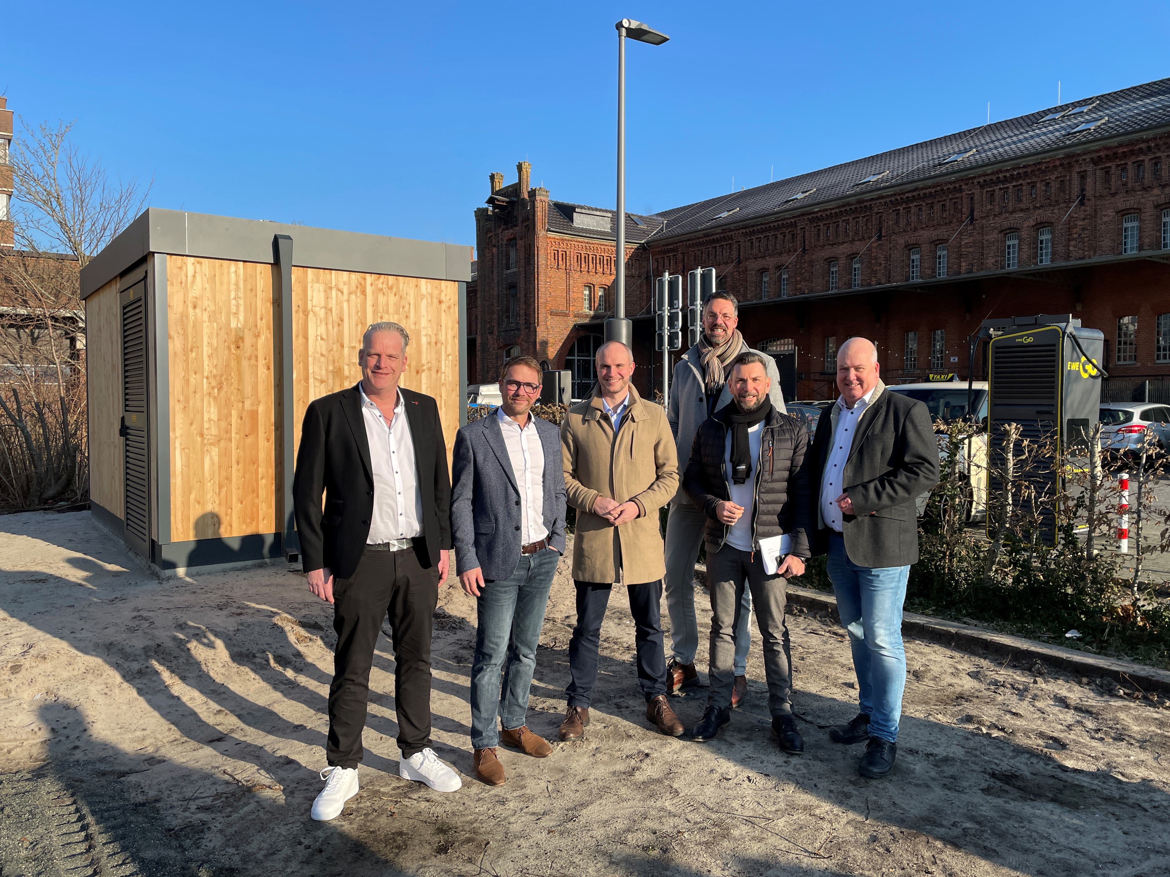 Im Stadtgebiet Leer setzt EWE NETZ ein sichtbares Zeichen für Klimaschutz und nachhaltige Infrastruktur: Am Zollhaus wurde jetzt die erste klimaneutrale Ortsnetzstation im EWE NETZ-Versorgungsgebiet offiziell in Betrieb genommen. Sie bildet die Grundlage für die Stromversorgung eines zukünftigen Quartiers auf dem alten Postgelände und fügt sich architektonisch in das Umfeld des historischen Zollhauses und der Packhäuser an der Georgstraße ein. Als zusätzlicher Vorteil können von der Station künftig auch die EWE Go-Ladesäulen vor Ort mit grünem Strom versorgt werden.